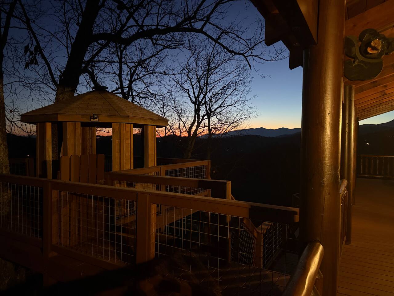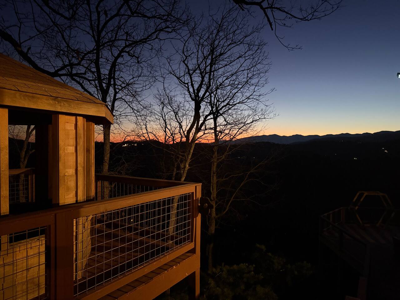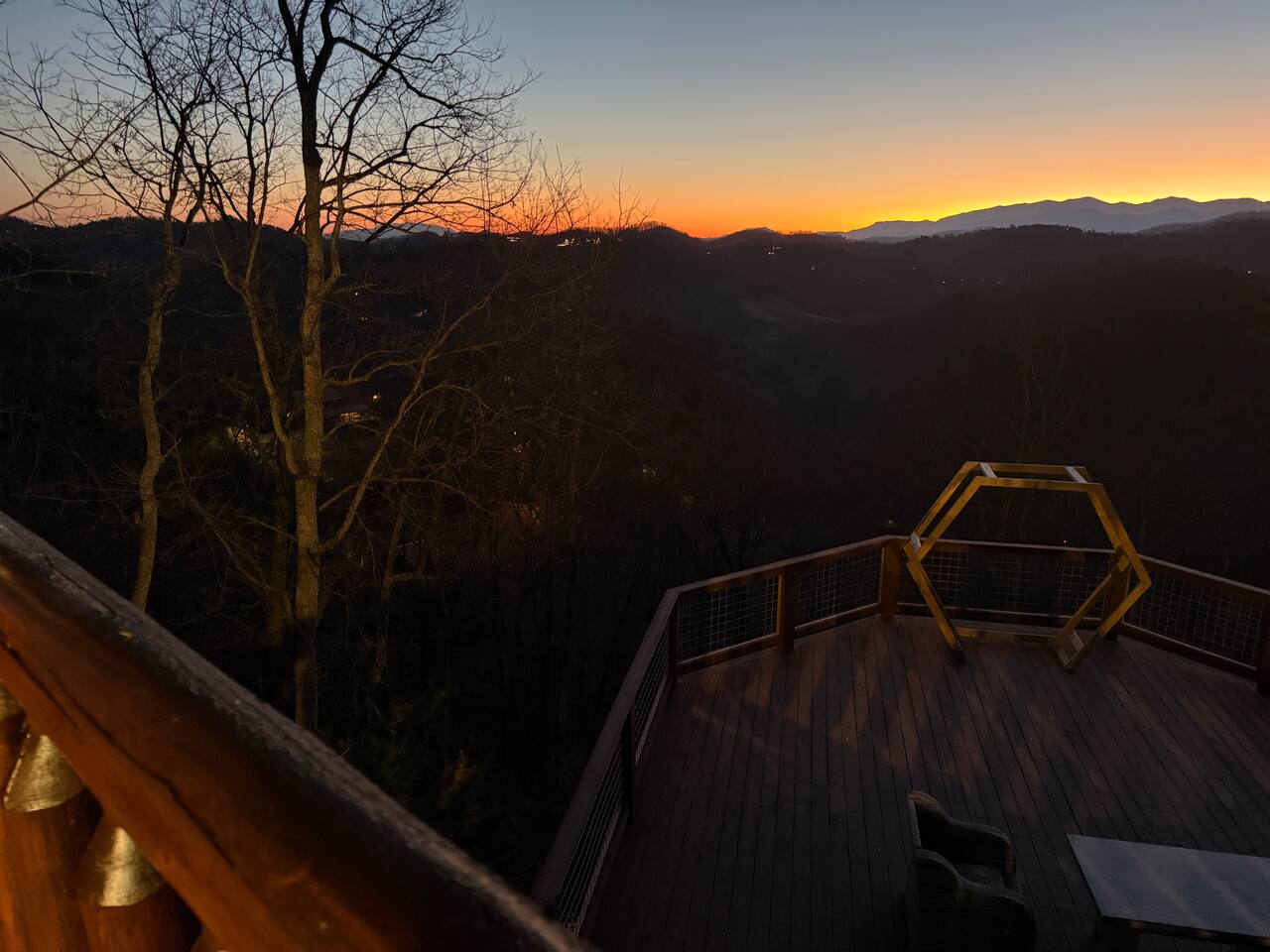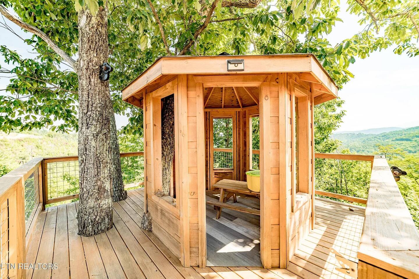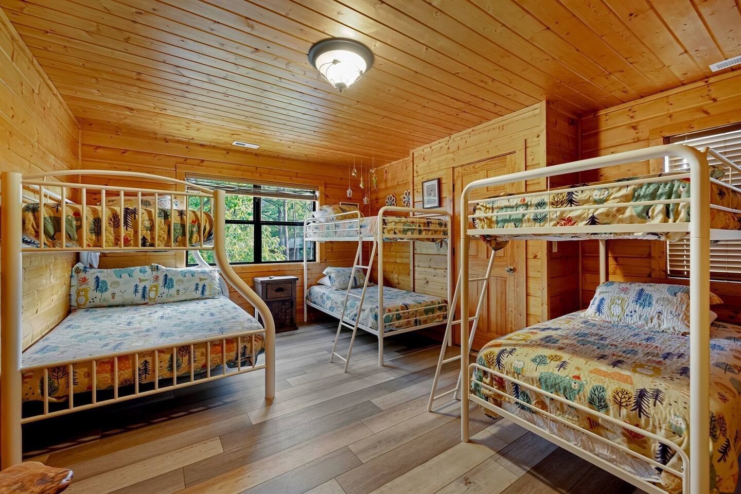 ✨ NEW OWNERS / NEW LISTING – Sunrise Oasis ✨ Welcome to Sunrise Oasis, a stunning 3,000 sq. ft. luxury Smoky Mountain retreat designed for relaxation and entertainment. The exterior space is truly one-of-a-kind, featuring a spectacular treehouse, observation deck overlooking the mountains, and a beautifully crafted outdoor kitchen, fire-pit, and game room. A huge event deck was completed in May 2025—perfect for unforgettable gatherings. $750 feet applies for events and 24 chairs and tables. Inside the Cabin Step inside to soaring windows framing unobstructed mountain views. The open floor plan features a spacious kitchen and dining area, fireside family room, and en suite bathrooms in every bedroom. Guests love hosting: family reunions, birthdays, corporate retreats, and getaways with friends. 🏡 MAIN LEVEL 🍽 Large Dining Room ⏲ Fully Equipped Kitchen 🪵 Fireside Family Room with TV 🚽 Powder Room 🛏 Master Suite (#1): King bed, TV, balcony access, private bath 🌄 OUTDOOR LIVING 🔥 Firepit Area (Firewood not provided) 🛀 Hot Tub 🥩 Gas Grill & Outdoor Kitchen 🌳 Treehouse 🌅 Wraparound Porches ☕️ Huge Deck for Morning Coffee & Scenic Views 🛌 SECOND FLOOR Bunk Room (#2): 3 bunk sets (Queen/Twin, Twin/Twin, Twin/Twin) + Full Bathroom and Loft 🎮 BASEMENT LEVEL 🛏 Bedroom #3: King Bed, TV, Full Bath 🛏 Bedroom #4: Queen Bed, TV, Full Bath ☀️ Balcony 🧺 Laundry Room 🎱 Game Room w/ Pool Table 🍸 Sports Bar & Poker Area 🐾 PET POLICY Up to 2 pets allowed (max 35 lbs each). $45/day per pet. Pets must be fully house trained. Owner responsible for outside cleanup—otherwise, a $200 fee applies. Please keep pets off furniture and beds. 🕓 EARLY CHECK-IN Available if no same-day checkout. $60/hour prior to 4 PM. 🔑 GUEST ACCESS You’ll receive a door code the day before arrival. Full private access to the home (some owner closets locked). Parking for up to 5 vehicles. 🔒 SAFETY Exterior cameras for added security 📺 TECH & CONNECTIVITY Wi-Fi throughout Smart TVs and/or ROKU 65” in main living room 75” in basement 65” in master bedroom 43” in bunk room ☕️ KITCHEN HIGHLIGHTS Fully stocked with: Full-size stove & refrigerator Keurig + Nespresso + Drip coffee makers Blender, toaster, crockpot, pressure cooker Air Fry, waffle maker Non-stick cookware, knife set, BBQ tools Hand and automatic Dishwashing detergent, and trash bags provided 🧺 LAUNDRY Washer & dryer and laundry detergent provided 🛏 LINENS & BATH Luxury bedding & extra pillows High-end towels & Turkish sets Shampoo, conditioner, soap, blow dryer in each bath Toilet paper provided