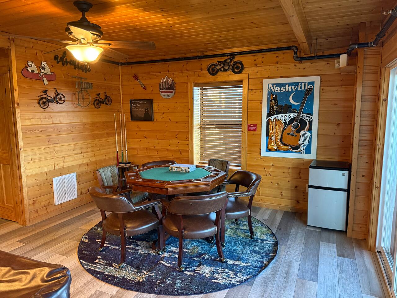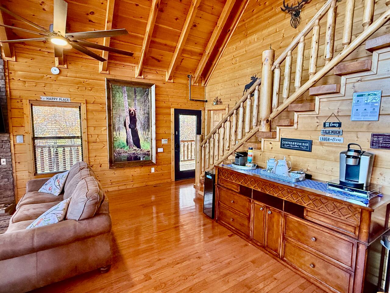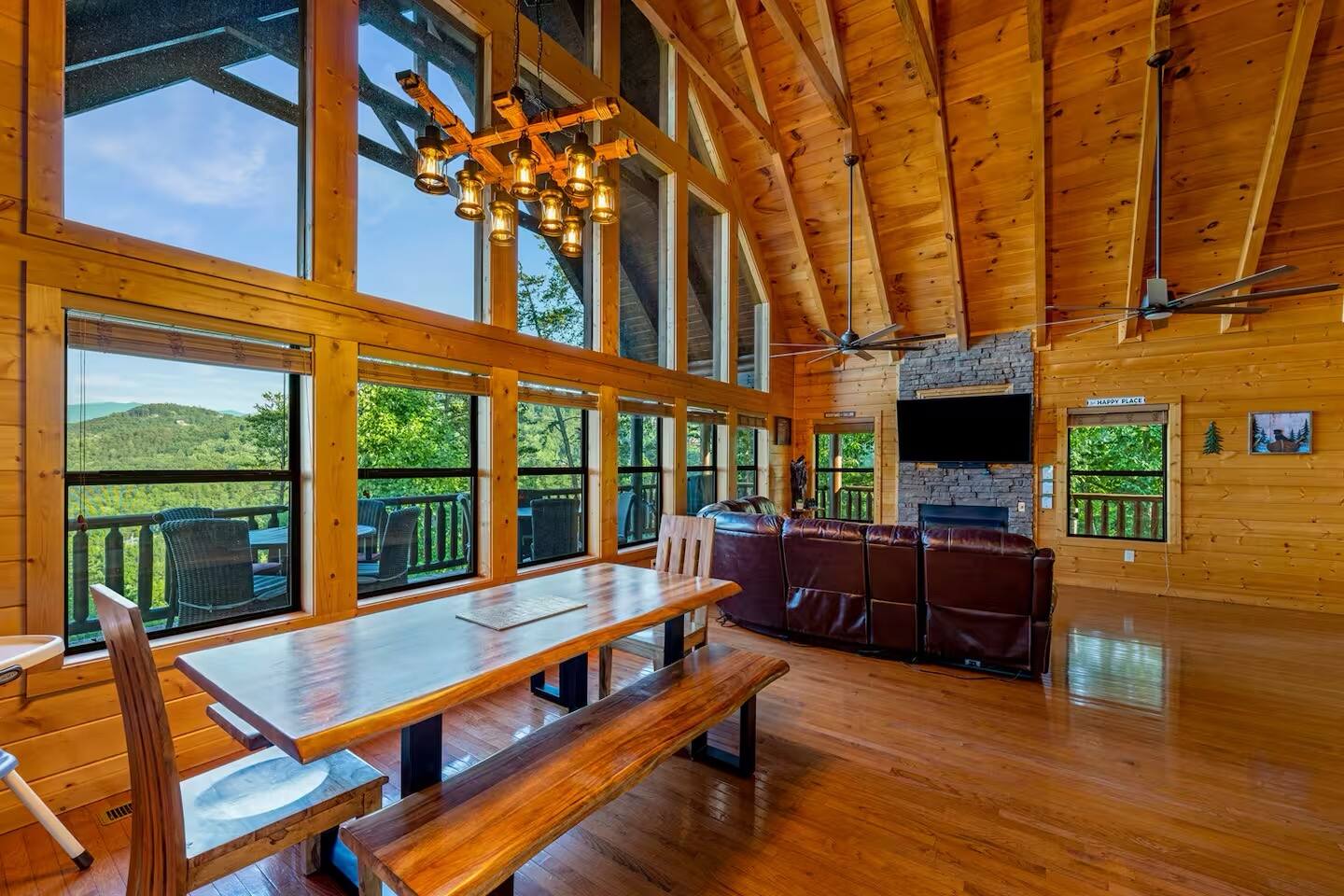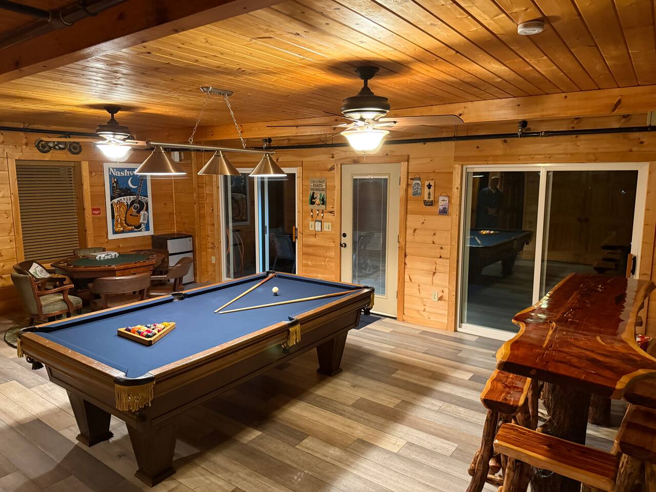 ✨ NEW OWNERS / NEW LISTING – Sunrise Oasis ✨ Welcome to Sunrise Oasis, a stunning 3,000 sq. ft. luxury Smoky Mountain retreat designed for relaxation and entertainment. The exterior space is truly one-of-a-kind, featuring a spectacular treehouse, observation deck overlooking the mountains, and a beautifully crafted outdoor kitchen, fire-pit, and game room. A huge event deck was completed in May 2025—perfect for unforgettable gatherings. $750 feet applies for events and 24 chairs and tables. Inside the Cabin Step inside to soaring windows framing unobstructed mountain views. The open floor plan features a spacious kitchen and dining area, fireside family room, and en suite bathrooms in every bedroom. Guests love hosting: family reunions, birthdays, corporate retreats, and getaways with friends. 🏡 MAIN LEVEL 🍽 Large Dining Room ⏲ Fully Equipped Kitchen 🪵 Fireside Family Room with TV 🚽 Powder Room 🛏 Master Suite (#1): King bed, TV, balcony access, private bath 🌄 OUTDOOR LIVING 🔥 Firepit Area (Firewood not provided) 🛀 Hot Tub 🥩 Gas Grill & Outdoor Kitchen 🌳 Treehouse 🌅 Wraparound Porches ☕️ Huge Deck for Morning Coffee & Scenic Views 🛌 SECOND FLOOR Bunk Room (#2): 3 bunk sets (Queen/Twin, Twin/Twin, Twin/Twin) + Full Bathroom and Loft 🎮 BASEMENT LEVEL 🛏 Bedroom #3: King Bed, TV, Full Bath 🛏 Bedroom #4: Queen Bed, TV, Full Bath ☀️ Balcony 🧺 Laundry Room 🎱 Game Room w/ Pool Table 🍸 Sports Bar & Poker Area 🐾 PET POLICY Up to 2 pets allowed (max 35 lbs each). $45/day per pet. Pets must be fully house trained. Owner responsible for outside cleanup—otherwise, a $200 fee applies. Please keep pets off furniture and beds. 🕓 EARLY CHECK-IN Available if no same-day checkout. $60/hour prior to 4 PM. 🔑 GUEST ACCESS You’ll receive a door code the day before arrival. Full private access to the home (some owner closets locked). Parking for up to 5 vehicles. 🔒 SAFETY Exterior cameras for added security 📺 TECH & CONNECTIVITY Wi-Fi throughout Smart TVs and/or ROKU 65” in main living room 75” in basement 65” in master bedroom 43” in bunk room ☕️ KITCHEN HIGHLIGHTS Fully stocked with: Full-size stove & refrigerator Keurig + Nespresso + Drip coffee makers Blender, toaster, crockpot, pressure cooker Air Fry, waffle maker Non-stick cookware, knife set, BBQ tools Hand and automatic Dishwashing detergent, and trash bags provided 🧺 LAUNDRY Washer & dryer and laundry detergent provided 🛏 LINENS & BATH Luxury bedding & extra pillows High-end towels & Turkish sets Shampoo, conditioner, soap, blow dryer in each bath Toilet paper provided