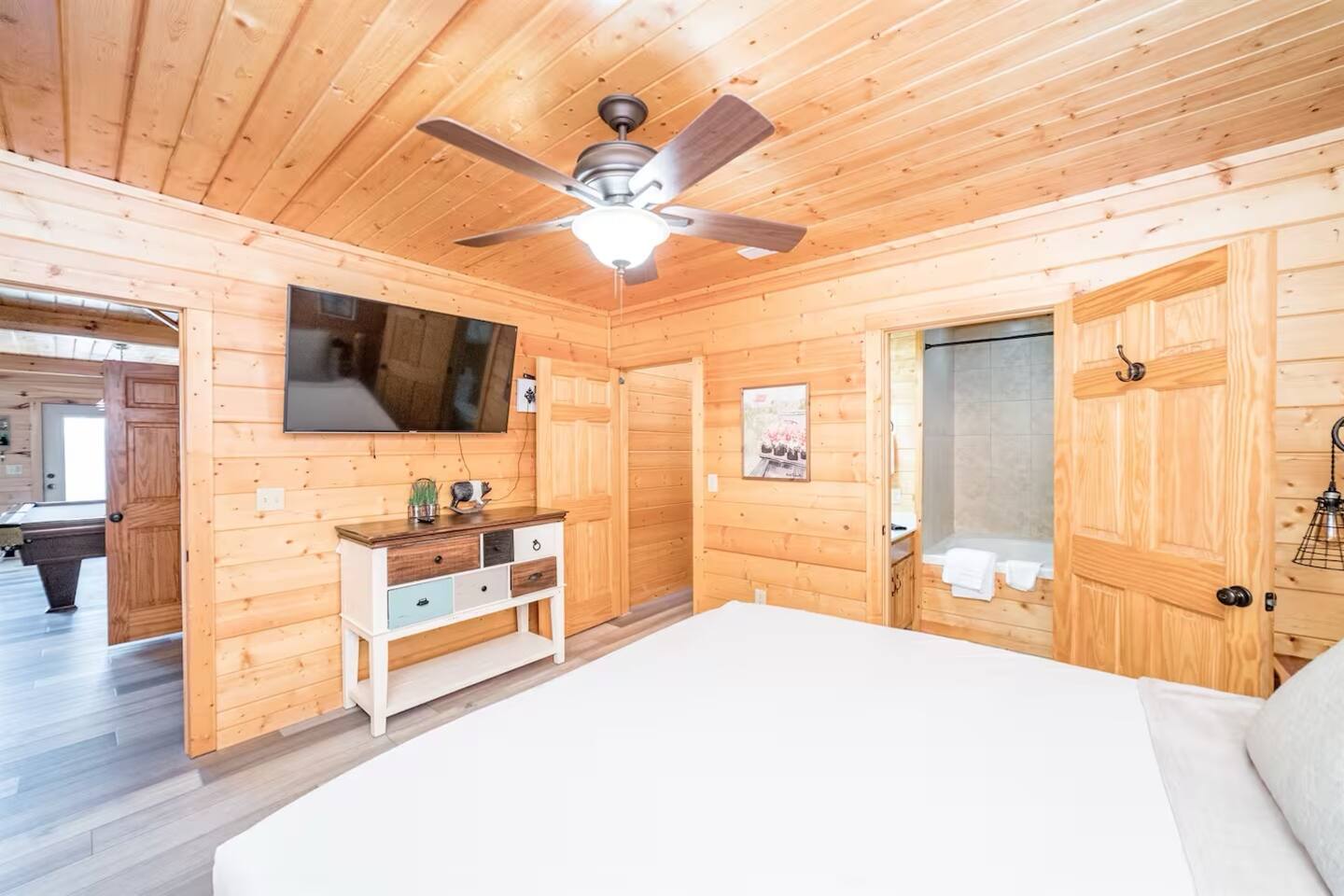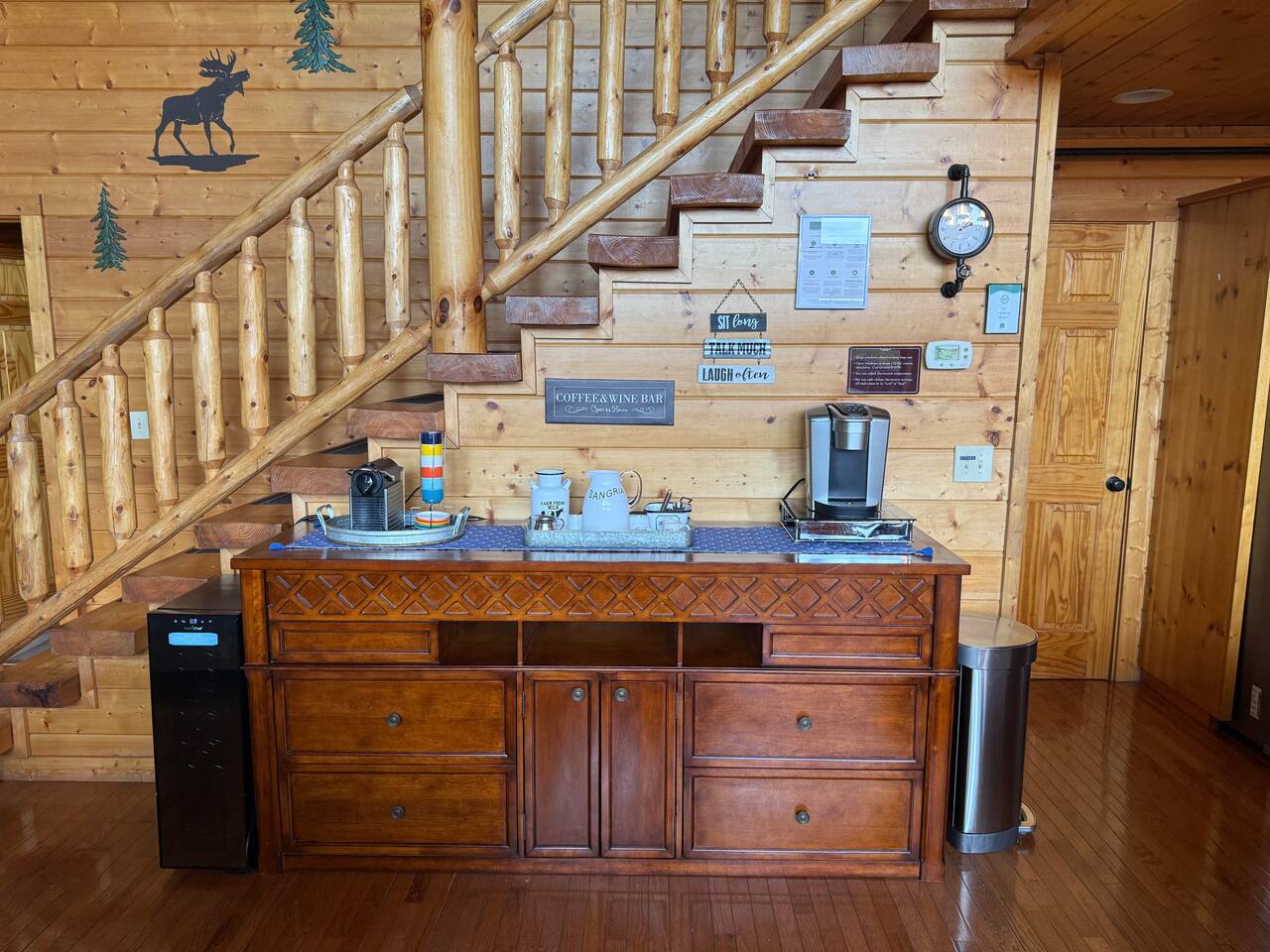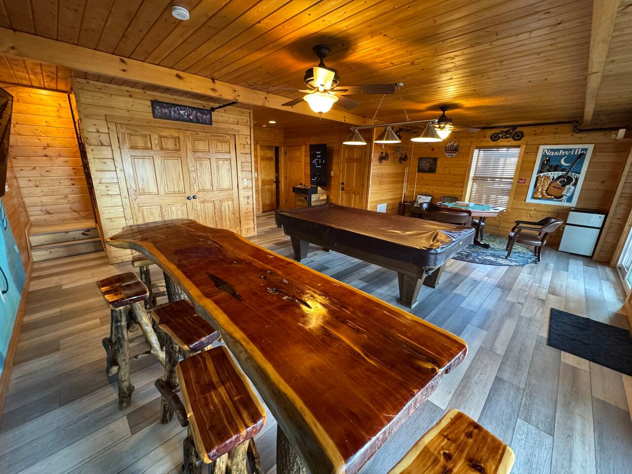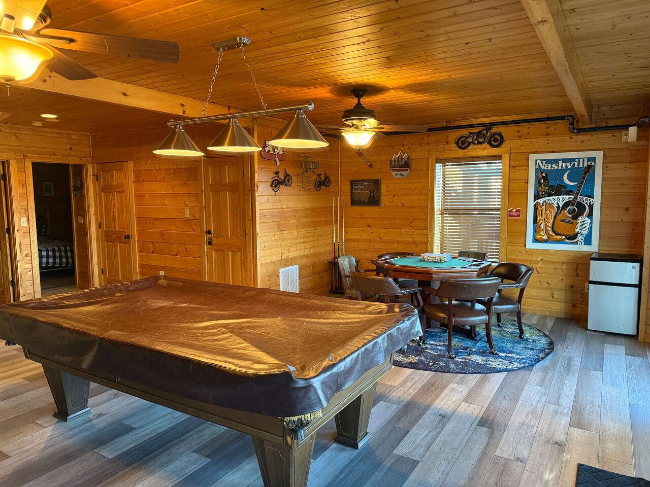 ✨ NEW OWNERS / NEW LISTING – Sunrise Oasis ✨ Welcome to Sunrise Oasis, a stunning 3,000 sq. ft. luxury Smoky Mountain retreat designed for relaxation and entertainment. The exterior space is truly one-of-a-kind, featuring a spectacular treehouse, observation deck overlooking the mountains, and a beautifully crafted outdoor kitchen, fire-pit, and game room. A huge event deck was completed in May 2025—perfect for unforgettable gatherings. $750 feet applies for events and 24 chairs and tables. Inside the Cabin Step inside to soaring windows framing unobstructed mountain views. The open floor plan features a spacious kitchen and dining area, fireside family room, and en suite bathrooms in every bedroom. Guests love hosting: family reunions, birthdays, corporate retreats, and getaways with friends. 🏡 MAIN LEVEL 🍽 Large Dining Room ⏲ Fully Equipped Kitchen 🪵 Fireside Family Room with TV 🚽 Powder Room 🛏 Master Suite (#1): King bed, TV, balcony access, private bath 🌄 OUTDOOR LIVING 🔥 Firepit Area (Firewood not provided) 🛀 Hot Tub 🥩 Gas Grill & Outdoor Kitchen 🌳 Treehouse 🌅 Wraparound Porches ☕️ Huge Deck for Morning Coffee & Scenic Views 🛌 SECOND FLOOR Bunk Room (#2): 3 bunk sets (Queen/Twin, Twin/Twin, Twin/Twin) + Full Bathroom and Loft 🎮 BASEMENT LEVEL 🛏 Bedroom #3: King Bed, TV, Full Bath 🛏 Bedroom #4: Queen Bed, TV, Full Bath ☀️ Balcony 🧺 Laundry Room 🎱 Game Room w/ Pool Table 🍸 Sports Bar & Poker Area 🐾 PET POLICY Up to 2 pets allowed (max 35 lbs each). $45/day per pet. Pets must be fully house trained. Owner responsible for outside cleanup—otherwise, a $200 fee applies. Please keep pets off furniture and beds. 🕓 EARLY CHECK-IN Available if no same-day checkout. $60/hour prior to 4 PM. 🔑 GUEST ACCESS You’ll receive a door code the day before arrival. Full private access to the home (some owner closets locked). Parking for up to 5 vehicles. 🔒 SAFETY Exterior cameras for added security 📺 TECH & CONNECTIVITY Wi-Fi throughout Smart TVs and/or ROKU 65” in main living room 75” in basement 65” in master bedroom 43” in bunk room ☕️ KITCHEN HIGHLIGHTS Fully stocked with: Full-size stove & refrigerator Keurig + Nespresso + Drip coffee makers Blender, toaster, crockpot, pressure cooker Air Fry, waffle maker Non-stick cookware, knife set, BBQ tools Hand and automatic Dishwashing detergent, and trash bags provided 🧺 LAUNDRY Washer & dryer and laundry detergent provided 🛏 LINENS & BATH Luxury bedding & extra pillows High-end towels & Turkish sets Shampoo, conditioner, soap, blow dryer in each bath Toilet paper provided